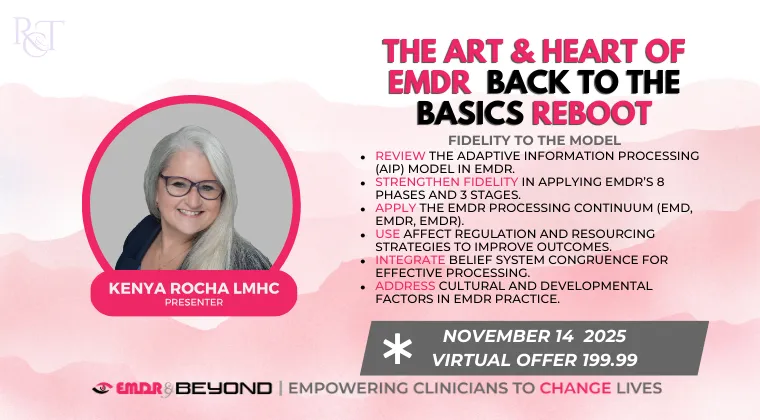 Kenya Rocha, LMHC, an EMDRIA Approved Basic Trainer, brings her extensive experience in teaching, consultation, and clinical practice to this 6-hour training. This training equips clinicians with the tools they need to strengthen their confidence and fidelity in EMDR therapy.
