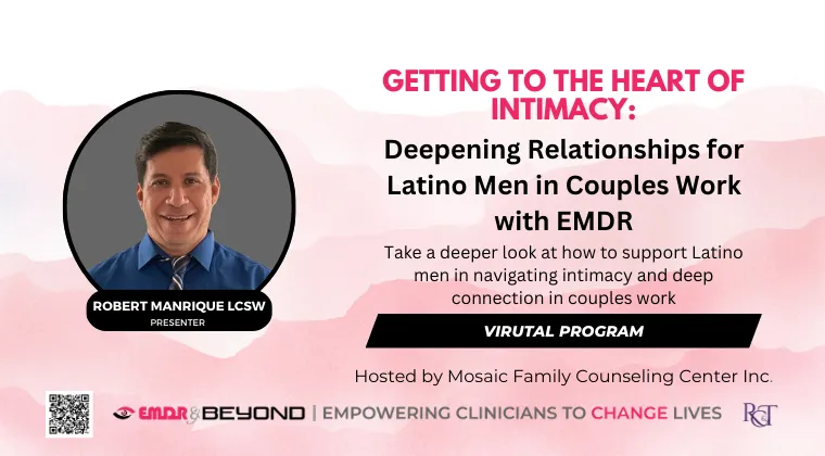 Trainer, Robert Manrique LCSW, brings his extensive expertise in this area to you. From his ongoing work with couples in this context, he will help us explore the intersection of trauma, patriarchal socialization, and mental health among Latino men. Drawing from culturally responsive frameworks and the work of Gabor Maté, Terry Real, and Jackson Katz, participants will examine the unique mental health needs of Latino men, including the role of masculinity, relational patterns, and intergenerational trauma. Special focus will be given to trauma treatment strategies, including the application of EMDR Therapy in culturally attuned ways.